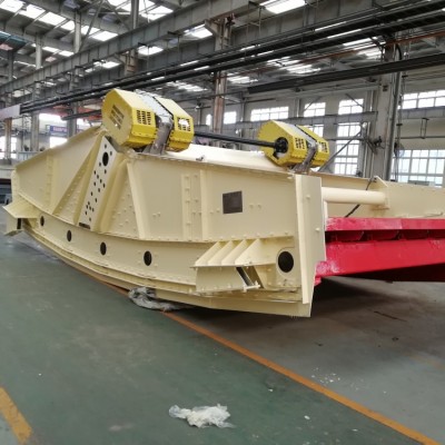 BLS系列箱式激振器大型香蕉筛是具有多段不同倾角筛面的直线振动筛, 主要用于细粒含量高的大,中粒物料的粒度分级,亦可用于中、细粒度物料脱水、脱介和脱泥作业。