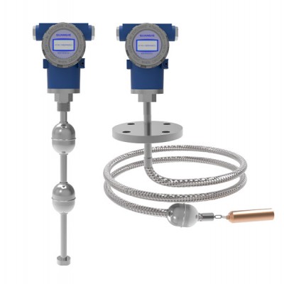 磁致伸缩液位计工作时,变送器的触发电路部分激励出脉冲电流,电流沿磁致伸缩线传播产生脉冲电流磁场。在磁致伸缩液位计的传感器测杆外配有磁性浮子,浮子沿测杆随液位的变化而发生位移。在浮子内部装有磁环,当脉冲电流磁场与浮子磁环磁场相遇时,浮子周围的磁场发生改变从而使磁致伸缩线在浮子停留的位置产生一个扭转波脉冲,这个脉冲以固定的速度沿磁致伸缩线传回至变送器由检测电路检出,通过处理器计算脉冲电流与扭转波脉冲的时间差可以准确地确定出浮子所在的位置,即液面的位置。变送器模电转换电路输出4-20mA或RS485 MODBUS信号,从而实现液位信号远传的目的。