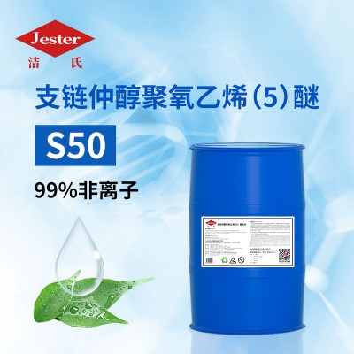 支链仲醇聚氧乙烯(5)醚S50(仲醇S50)是一款绿色环保的阴离子表面活性剂,具有湿润,乳化、分散、油污沉降,中低泡特性,是目前在大部分硬表面清洗行业的主要选择性能之一。