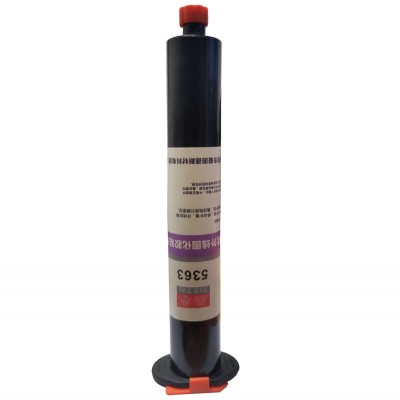 5363是一种单组份紫外线光(UV)固化胶粘剂。多种粘度可选择、中等触变性、表干性好、固化速度快、附着力强、防振动韧性好、耐老化耐腐蚀等特点。主要应用于电子元件、电机线圈固定、PVC并线粘接、排线端子补强、集成电路引胶、PCB板等基材的焊点保护以及密封固定。