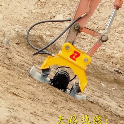 平板液压振动夯适用于多种地形及多种作业方式。可完成平面夯实、斜面夯实、台阶夯实、沟槽凹坑夯实及其它复杂基础的夯实处理。可直接用于打桩,安装夹具后可用于打拔桩、破碎等。