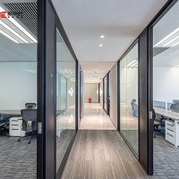 环保节能:相较于传统隔墙,该隔断系统在施工过程中减少灰尘、噪音、建筑垃圾和有害物体,符合环保要求。同时,其通透的设计能够有效利用自然光,减少照明设备的使用,达到节能环保的目的。