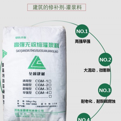 CGM-1通用型高强无收缩灌浆料具有早强、高强、自流动和微膨胀等特性,适用于设备基础的二次灌浆、混凝土结构的加固改造、钢筋和地脚螺栓的锚固等工程。