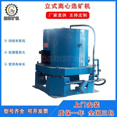 黄金水套式离心选矿机是现代重选设备之一。由于其处理能力大,选别粒度范围广,操作维护简单,作为粗选或精选被广泛用于选别金、锡、钨、钛、赤铁等。黄金水套离心机是根据离心力定律,在传统离心机基础上进行研制和改进的一种节能中选设备,使矿物中的重矿粒得到充分沉降,大大提高了设备的选别比能力和回收率,回收率可达90以上。作业回收率提高Sn:3.01%,W:5.5%,Pb:1.63%,Zn:2.04;耗水量减少30%—40%,占地面积减少1/3,且冲程可调整,由于采用电磁调速电机进行调节,使冲次无级调节。其性能达到国内先进水平,是目前较理想的节能重选设备之一。