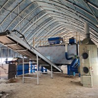 (2) 操作简单:只需按比例将物料加入储料仓,由输送机将物料送入发酵主机,接入复合生物菌种搅拌混合,按需曝气、加温供氧,物料搅拌机构按预定频率间歇工作,在设备内约2-3小时即可完成一个批次的处理,出料后装运至堆场。