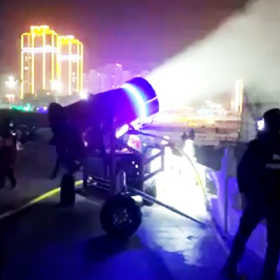 还有造雪机风筒的旋转角度,旋转角度如果能够达到360°是非常理想的状态,让造雪机的造雪范围大,减少移动造雪机时操作人员的工作量。造雪机对于风筒仰角和水平旋转的角度都是自动化设置,合理控制仰角的角度和水平旋转的速度,大范围均匀铺雪。