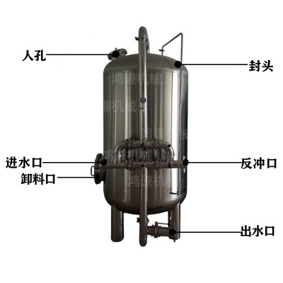 石英砂过滤器是一种压力式过滤器,利用过滤器内所填充的精制石英砂滤料,当进水自上而下流经滤层时,水中的悬浮物及粘胶质颗粒被去除,从而使水的浊度降低。