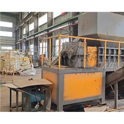 金属桶撕碎机利用锤子击打的基本原理,上料口带有过滤式传送带,在高速大扭矩电机的驱动下,主机转子上的锤头轮流击打进入容腔内的待破碎物,通过衬板与锤头之间形成的空间,将待破碎物撕裂成合乎规格的破碎物。根据破碎机的工作状况,可分成干式系统、湿式系统和半湿式系统。干式系统主要是指破碎物须经过空气回旋分拣系统,把金属和非金属分离开,另外整个系统装有除尘装置。湿式系统是指破碎的同时进行喷水,并且在分拣同时进行淋水清洗。