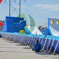 1:水上乐园包含充气水滑梯,水池(充气水池,支架水池),充气水上浮具等组合而成。