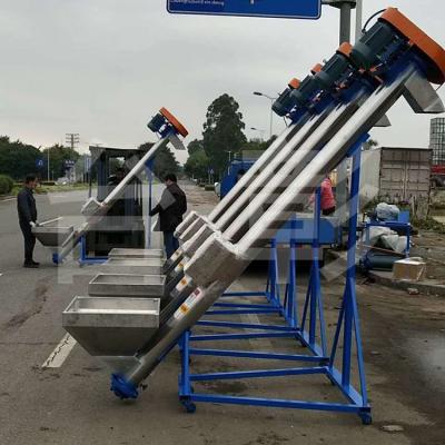 为能够便于清理残料设计成:螺旋可以反转排料、料管下端有闸门放料、整条螺