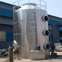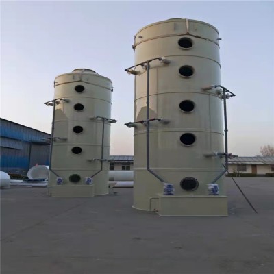 本设备分单塔体和双塔体。采用圆形塔体,用法兰分段联接而成。具体由贮液箱、塔体、进风段、喷淋层、填料层、旋流除雾层、观检窗、出风口等组成。