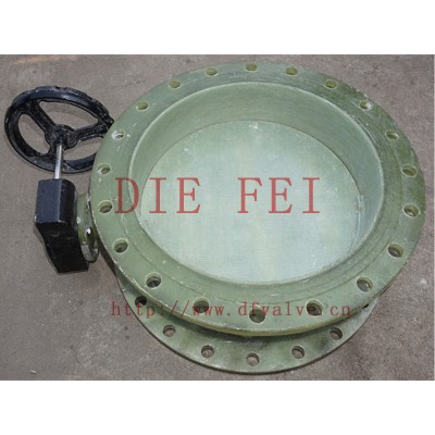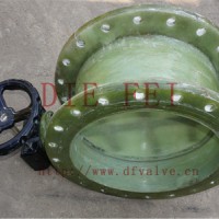 玻璃钢蝶阀把主要易腐蚀部件如阀体、阀板等设计为玻璃钢材料,玻璃钢部件所使用的纤维、纤维织物与树脂类型由蝶阀的工作条件确定。玻璃钢阀体的主体形状为直管状,它的结构特点是以一段玻璃钢直管为基础,然后再增加法兰、密封环制造而成。该种蝶阀具有耐腐蚀能力强、成本低廉、制造工艺简单灵活等特点。质轻而硬、不导电、机械强度高、耐腐蚀、安装方便、耐温高。可添加防静电材料,达到防静电作用。玻璃钢蝶阀可用于输送腐蚀性气体的管道中,具有不腐蚀,寿命长的特点,可做成各种颜色。