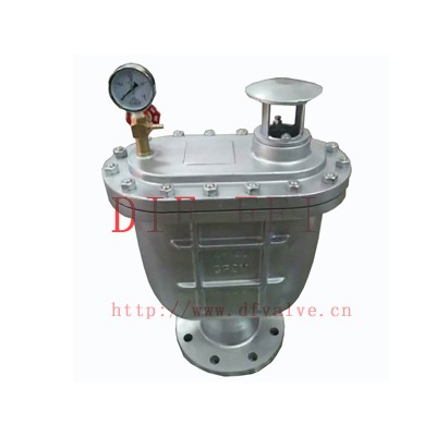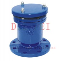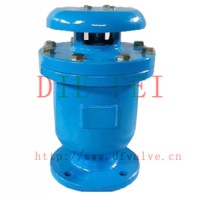 复合式排气阀用于工业介质为水的管路上,作为快速排除管道内气体的设备,以提高输送水设备的效率和保护管道不致变形破裂,是管道的必备之设备。能够排除管道中的气体,减少阻力节约能源。当管道负压时能快速自动吸入空气防止管道破裂。排气能力是普通双孔排气阀多倍。浮球托架为不锈钢,使用寿命长,可靠。阀为圆桶状式阀体,共内部主要有不锈钢浮球及塞头。本阀装设于泵埔出口处或送配水管线中,用以大量排除管道中的集结之空气,以增进水管及抽水机使用效率,且与管内一旦出现负压时,此阀能迅速吸入空气,以保管线因负压所产生损坏。