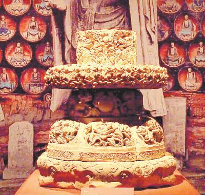 第三单元“镌岩妙相”展出的明代香炉,也是一件价值非凡的珍品。香炉为镂空雕刻而成,饰有龙纹、云纹、花卉、双狮戏球等图案,刻工精湛,匠心别致。在大足已发现的石刻香炉中,这件作品雕刻技艺最为杰出,体现了明代工匠的高超水平。