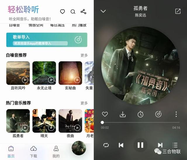 一款小巧简洁的音乐软件,轻松搜索全网无损音质音源,可将其他音乐APP歌单导入,更有助眠白噪音,两种相结合,可以满足失眠的朋友