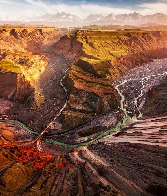 险峻的山体,斑斓的色彩,蜿蜒的盘山公路,还有如血管般密布的河流,它美得气势磅礴,又惊心动魄