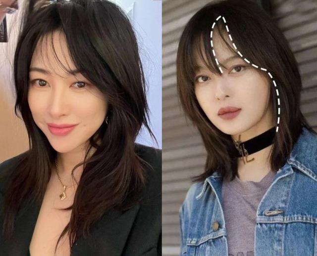 “辛芷蕾发型”起初能够火起来,就是因为幸芷蕾给大众带来的反差感,原本性感大女人味儿的类型,剪一个刘海换个发型,瞬间就给人一种甜美气息,这种反差感很能引起共鸣,而且像这种无重感的空气刘海,和两侧头发衔接得很自然,所以也更加显脸小。