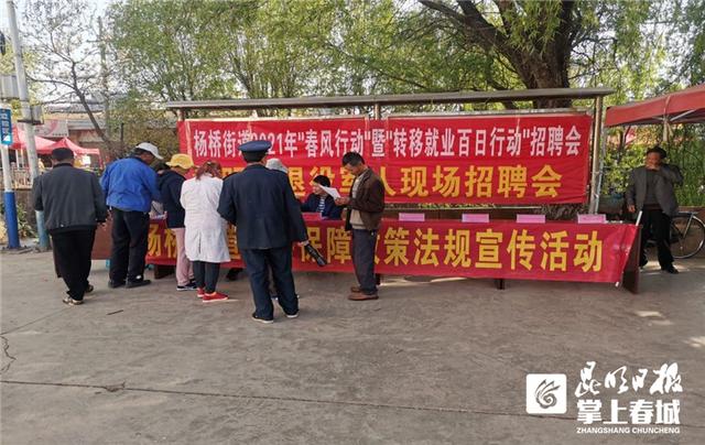 掌上春城讯3月16日,嵩明县杨桥街道举办2021年“春风行动”暨“转移就业百日行动”招聘会。9家企业参与招聘,涉及会计、操作工、库管、保洁、保安等400余个就业岗位。