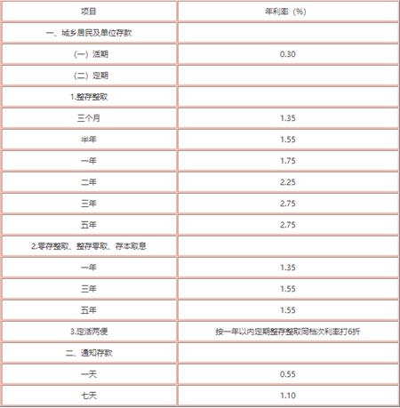 建设银行存款利率:活期存款,0.30%。