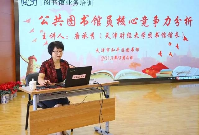 为进一步提高和平区图书馆全体员工和分馆工作人员的综合素质、业务能力和服务水平,9月4日,区图书馆邀请天津财经大学图书馆长 唐承秀进行专题培训。区图书馆全体职工、街道图书馆、共享书吧、津城书吧管理员参加培训。